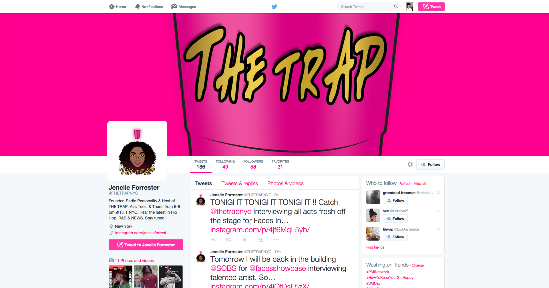 The Trap is a NYC radio show that features underground Hip-Hop artists. It is hosted by radio personality, Jenelle Forrester. Jenelle requested a logo that represented her, the music she plays, and the college party atmosphere.